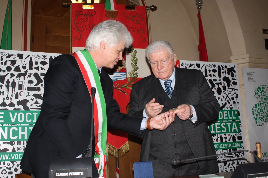 Conferito il Sigillo della città a Sergio Zavoli, uno degli ospiti protagonisti della rassegna «Le voci dell’inchiesta».
