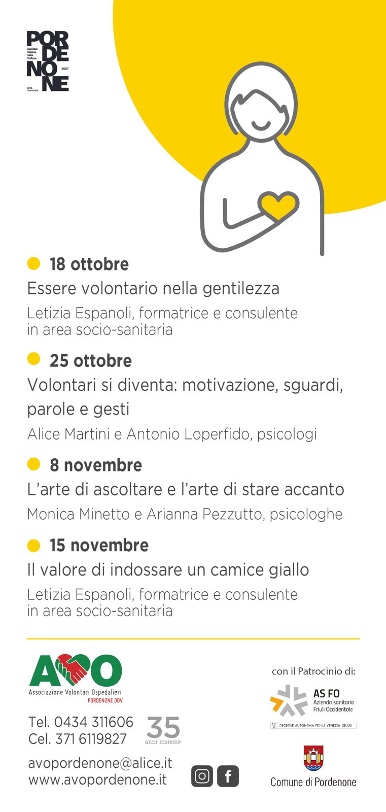 - Indossa anche tu un camice giallo. Il corso si rivolge a chi desidera diventare volontario e dedicare qualche ora ai pazienti dell'Ospedale Civile di Pordenone o ai residenti delle Case di Riposo